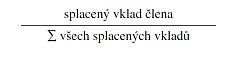 který se násobí výší vlastního kapitálu družstva (po odečtení rezervního fondu, je-li podle stanov zřízen a nelze jej rozdělit mezi členy družstva) zjištěného z účetní závěrky sestavené k poslednímu dni účetního období, v němž členství zaniklo.