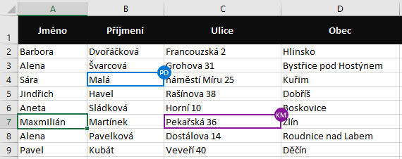 Ve druhém případě uvidíme výsledky filtrace jen my a aby bylo zřejmé, že pracujeme v zobrazení, které s ostatními nesynchronizujeme, tak dojde k zabarvení záhlaví řádků a sloupců.