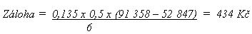 Pojistné = 0, 135 x 0,5 x (91 358 – 52 847) = 2 600 Kč