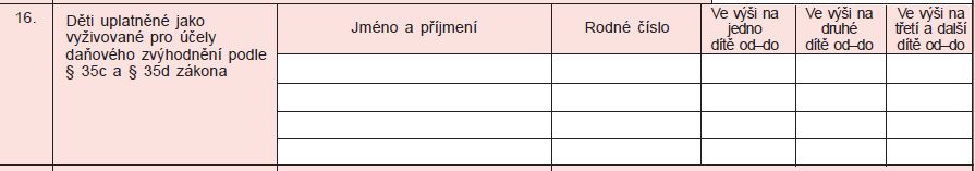 Pro účely uplatnění daňového zvýhodnění po uplynutí roku (v DAP nebo při RZZ u posledního zaměstnavatele) byl dále upravený tiskopis Potvrzení o zdanitelných příjmech ze závislé činnosti, sražených zálohách na daň a daňovém zvýhodnění (Tiskopis 25 5460 MFin 5460 – vzor č. 23), zejména se jedná o řádek č. 16, kde jsou zapracovány nové sloupce pro uplatnění daňového zvýhodnění v diferencované výši. Uvede se zde jméno a příjmení dítěte, rodné číslo a kalendářní měsíce, ve kterých bylo u něj uplatněno daňové zvýhodnění ve výši na jedno dítě, nebo na druhé dítě, anebo ve výši náležející na třetí a každé další dítě (měsíce se vyznačí číselně, např. 1–12 nebo 9–12 či 1, 3, 4 a 5 atp.).