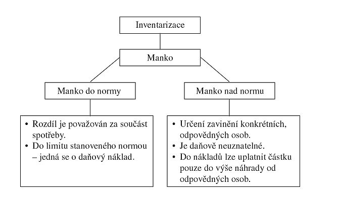 V rámci inventarizace účetní jednotka porovnává výsledek fyzické inventury s inventurou účetní. Po obou inventurách, fyzické i dokladové, a vyhotovení inventurních soupisů následuje zjištění a posouzení inventarizačních rozdílů (zjištění manka nebo přebytků) a jejich příčin. Zaměstnavatelé si mohou vnitřním předpisem stanovit normu přirozených úbytků. Vnitropodnikové předpisy mají při řešení této problematiky velký význam, protože mimo jiné určují také odpovědné osoby, na kterých může být nárokována náhrada škody.